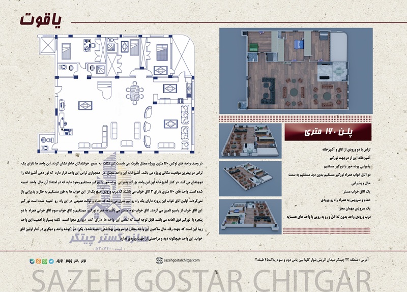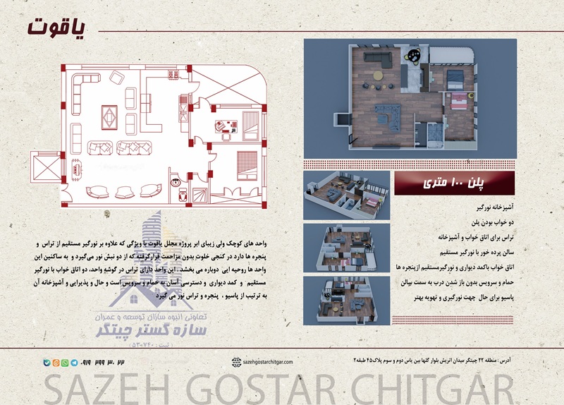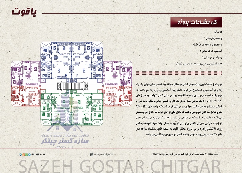 • متراژ واحد: ۱۰۰ تا ۱۶۰ مترمربع