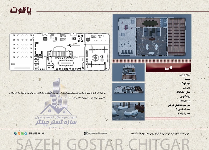 این پروژه توسط شرکت تعاونی انبوه سازان توسعه و عمران سازه گستر چیتگر با شماره ثبت ۵۳۰۷۴۰ به بهره‌برداری خواهد رسید. این مجموعه با کانسپت مدرن طراحی و ساخته خواهد شد.