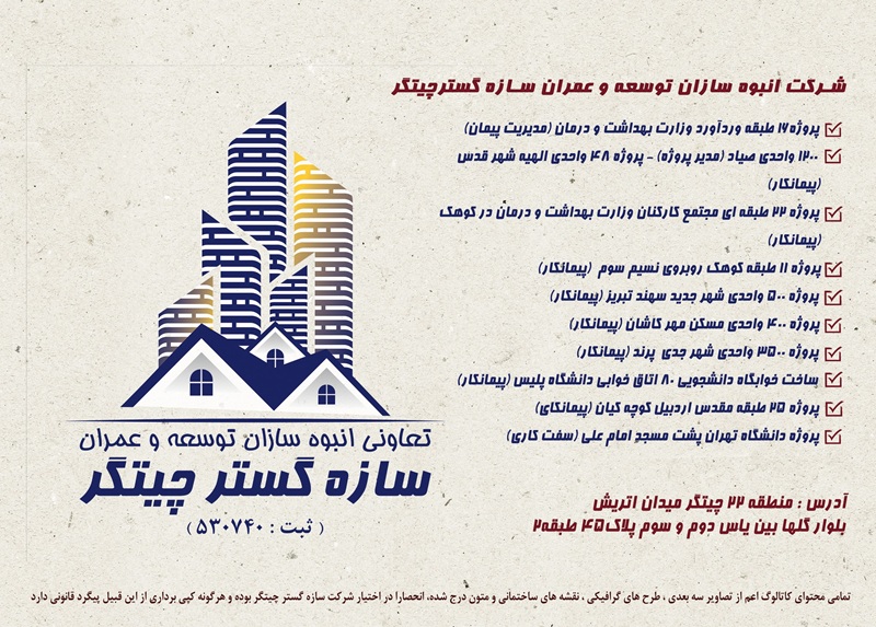 سازنده : شرکت تعاونی انبوه سازان توسعه و عمران سازه گستر چیتگر